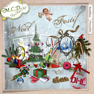 Noel festif est un kit gai pour scrapper vos photos durant la période des fêtes de fin d'année.